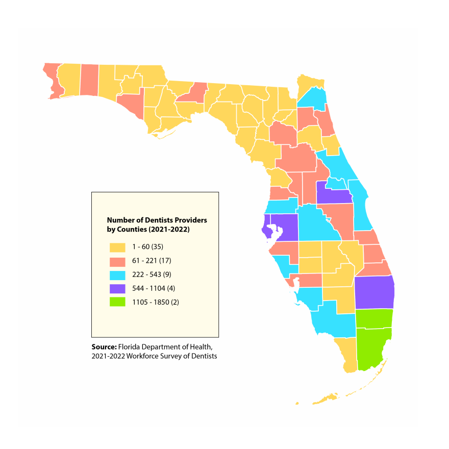 “Dentists go to the larger metropolitan areas — Tampa, Miami, Jacksonville, Orlando — and they don’t really go to the rural areas as much,” Catalanotto said, “and that’s partly due to the reimbursement levels being offered.”